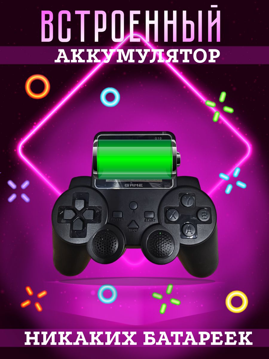 Беспроводная игровая консоль прекрасно подойдет для детей и для взрослых. Портативная приставка игровая имеет 2 беспроводных геймпада (беспроводной джойстик игровой) и отлично подходит для парных игр.